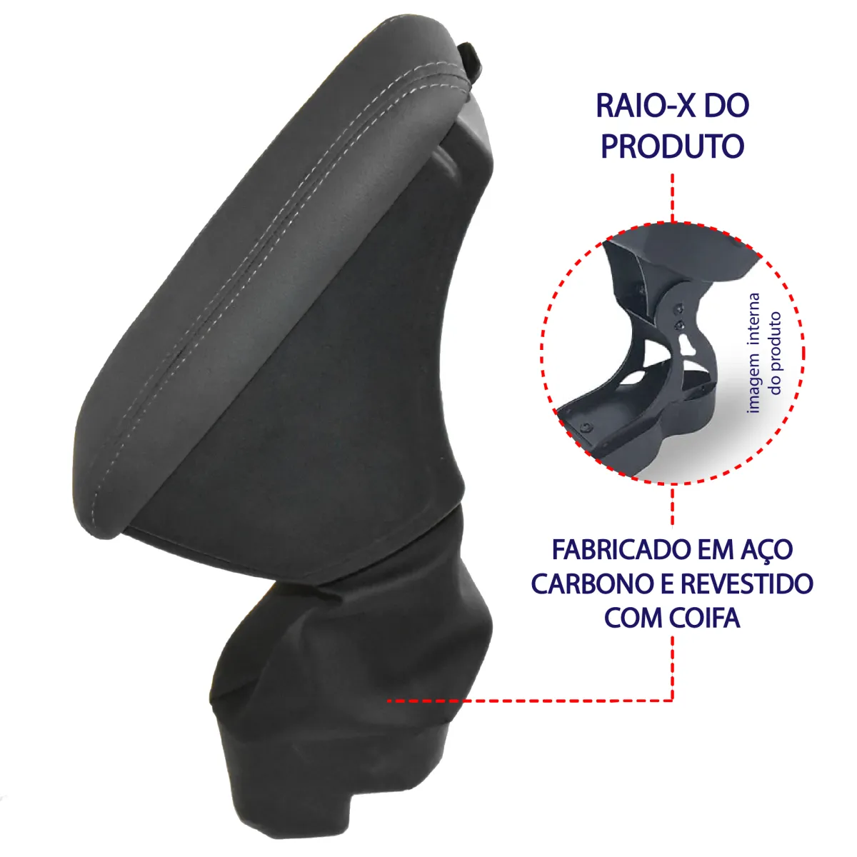 A instalação é simples e pode ser feita em casa, não é necessário furos ou cola, pois o Apoio de Braço é apenas encaixado no console central. A base do Apoio é feita de aço carbono com parte inferior emborrachada e moldada sob medida, tendo encaixe firme e perfeito no veículo!