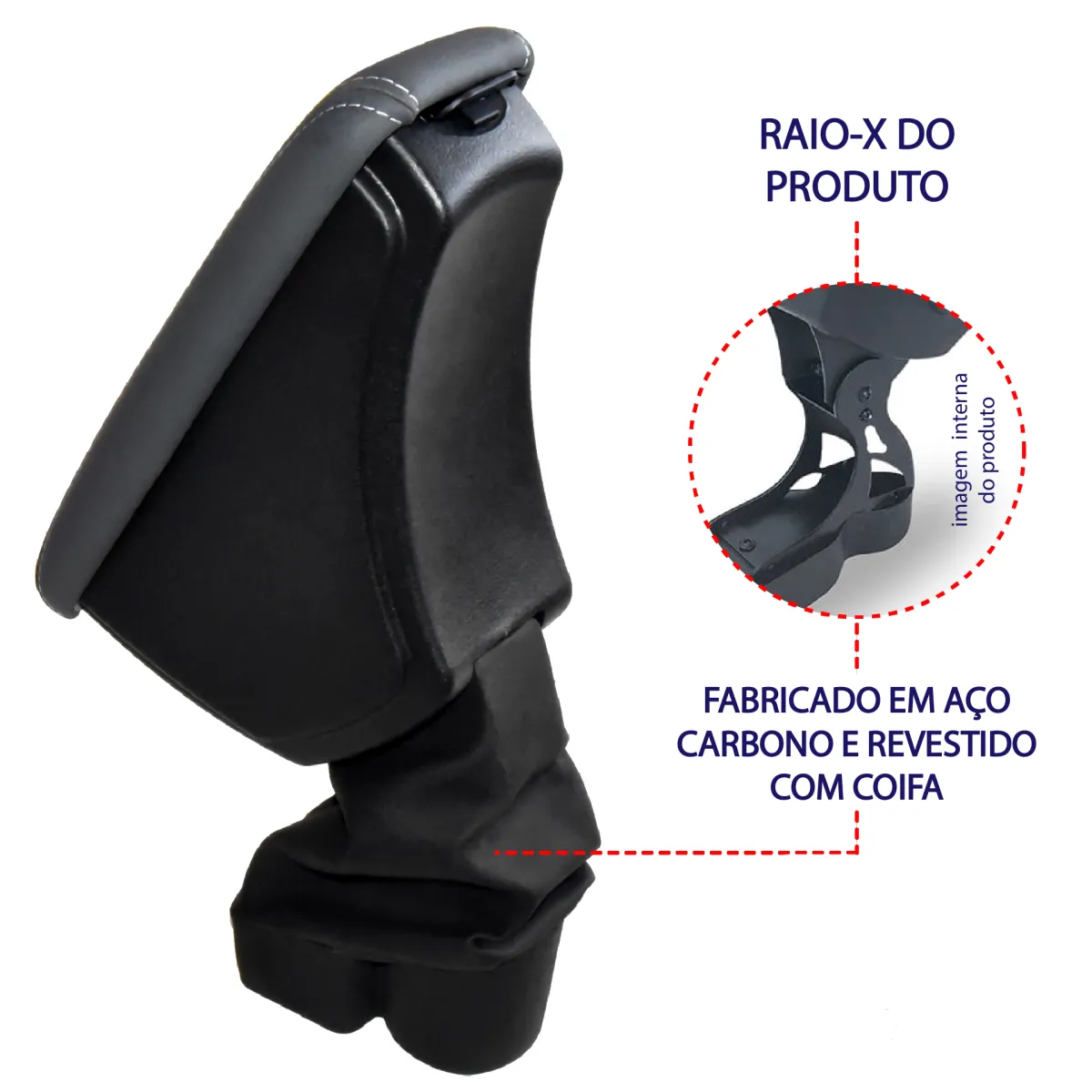 A instalação é simples e pode ser feita em casa, não é necessário furos ou cola, pois o Apoio de Braço é apenas encaixado no console central. A base do Apoio é feita de aço carbono com parte inferior emborrachada e moldada sob medida, tendo encaixe firme e perfeito no veículo!