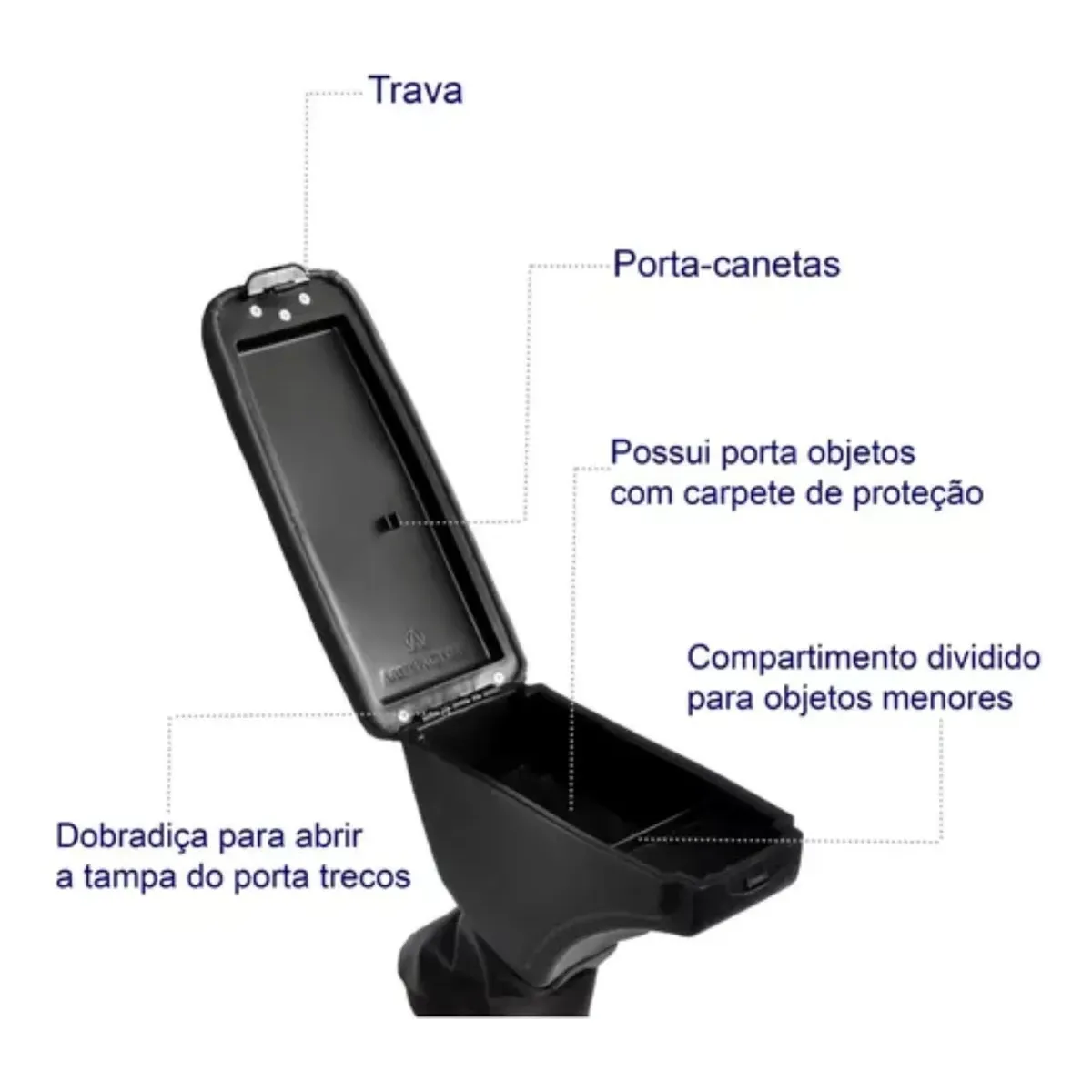 • Porta-objetos com dois compartimentos.